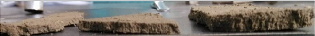 2、改型後汙泥輸送到高壓(yā)帶式壓濾機,在高壓、密集作用力下實現汙泥脫水。主要工作原(yuán)理:反(fǎn)複、多次高(gāo)壓壓(yā)榨改性汙泥(ní),使壓(yā)榨汙泥形成5-10mm多孔隙薄片狀(見下圖),確保脫穩後的水分被充分擠(jǐ)出。